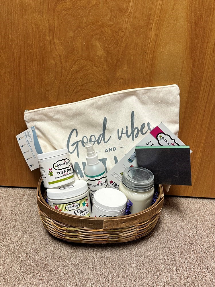 Rethunk Junk kit includes: Resin Paint Prep Satin Tuff Top (2) Georgia Peach candle Paint Brushes (assorted) and bag