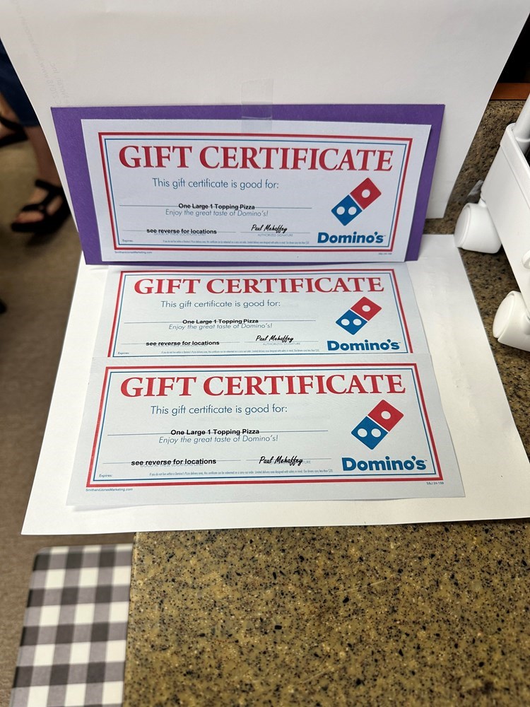 Donated by: Domino's Pizza Yadkinville