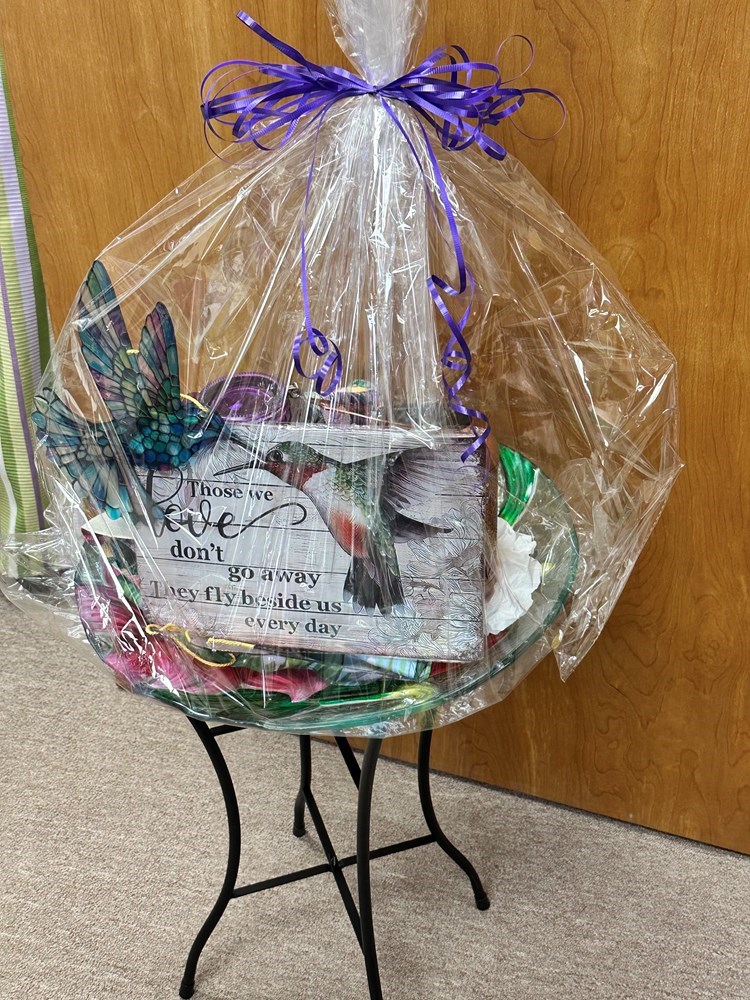 Hummingbird Basket includes: Vintage Hummingbird Metal Tin Sign Ice Blue Hummingbird Suncatcher Double-sided garden flag "Always Loved, Never Forgotten" Hummingbird Solar Lantern Outdoor Copper Metal Light Colorful Hummingbird Suncatcher Glass Hummingbird Hanging Tile "Welcome" Spring garden flag Purple Hummingbird Feeder Hummingbird Birdbath with Stand