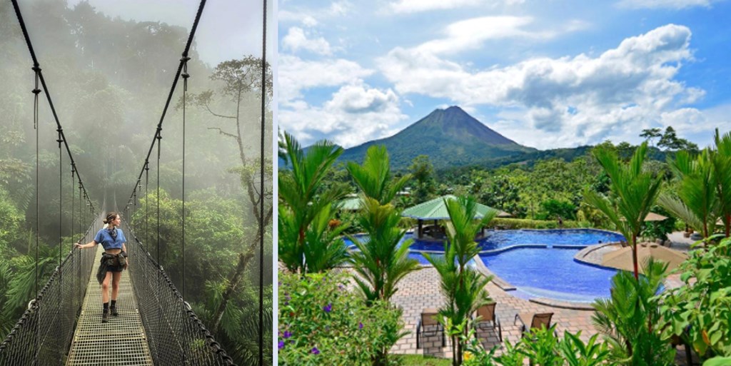 Relax and unplug for four nights and five days in Arenal, La Fortuna, Costa Rica. You will soak in and enjoy the volcano-fed thermal springs and take in the beautiful Arenal Volcano and rainforest scenery, where Costa Rican tree frogs, Toucans, sloths, monkeys, and exotic birds are plentiful. Your hotel is nestled in a serene and secluded location surrounded by breathtaking views of the Arenal Volcano; this hot spring resort is a haven of relaxation and indulgence in the La Fortuna area. Enjoy the spa and hot spring pool, fed by natural mineral water, which has therapeutic properties. It is the perfect place to relax and unwind after a day of exploration, soaking up the tranquility of the surroundings. During your stay, experience a one-day adventure excursion of Arenal hanging bridges, zipline, Arenal volcano hike, rainforest night walk, nature safari boat ride, or horseback in the volcano foothills. Additional excursions are available and can be arranged at the time of booking. INCLUDES - 4-Night Accommodation at Arenal Manoa (or similar based on availability) - Breakfast for two every morning - One-day Rain Forest Hanging Bridge adventure excursion for two Location: La Fortuna, CR Details: 4 nights / 1 bedrooms / Sleeps up to 2 Restrictions: Subject to availability. Not valid over Thanksgiving, Christmas, and New Year’s breaks. You'll contact the provider directly within 12 months of purchase to select dates and book the package. Valid: Valid for a wide range of dates throughout the year