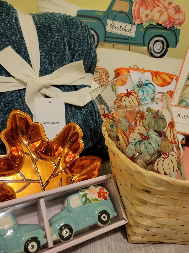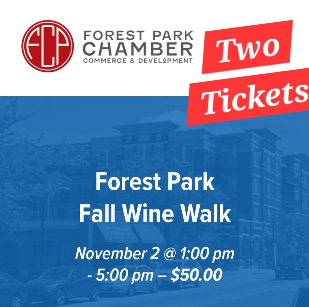 Feed Your FALL All things fall are part of this basket: Plush Nordstrom blanket Pumpkin throw pillow Two Pumpkin glasses, three piece baking set and pumpkin drying rack towel Fall pumpkin truck salt/pepper shakers and standup decor Fall leaf container Value over $150 (Donated by Kristen Lyons) Two (2) tickets to the Forest Park Chamber of Commerce Wine Walk Saturday, November 2, 2024 Value $100 (Donated by the Forest Park Chamber of Commerce)