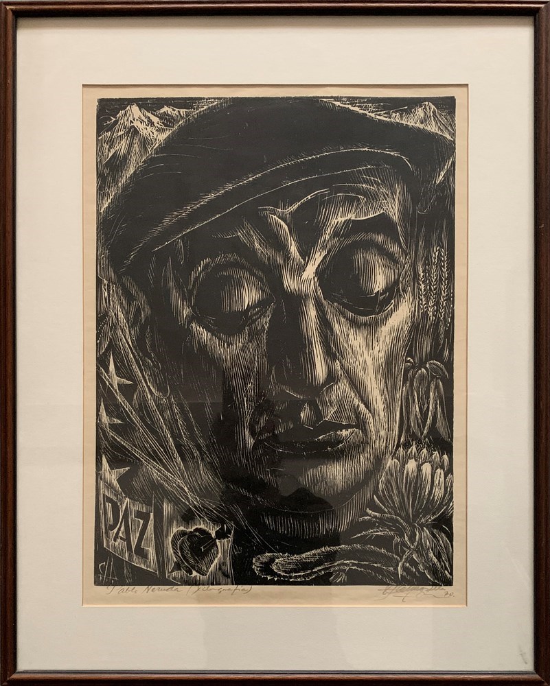 Art Work - Untitled Artist - Carlos Hermosilla Alvarez In 20th Century history, the renowned Chilean printmaker and poet Carlos Hermosilla Alvarez (1905-1991) came to be revered in his homeland, but remained relatively unknown outside some academic circles in the United States. The reasons are many, but what grows stronger with the passage of time are Hermosilla Alvarez' images, which sought to right a wrong, and help free millions of oppressed Chileans from the dictatorship of Augusto Pinochet. Hermosilla Alvarez was born in Cerro, Chile and the eldest of three boys from a middle income family. Unfortunately, his youth was spent in and out of hospitals, suffering numerous operations after contracting tuberculosis. It decalcified his bones and required a lot of recuperation. He vowed to become an artist despite losing and arm and a leg to the disease. He began to draw during this period, and eventually met and married his future wife, Maria Pinto, a nurse and sculptresss. As a result of President Franklin Roosevelt’s Good Neighbor Policy cultural exchanges in the 1940s, Hermosilla Alvarez' work was first seen in the United States. Exhibitions of his work were held in the US, Finland, Germany, and France and the proceeds went to support the exile Chilean communities and the various domestic causes which he and his wife supported. He drew the working people and peasants of Chile. Hermosilla Álvarez made an unwavering lifelong commitment to social justice and democracy . He and his wife lived among the working people whom he portrayed with dignity and respect until his death in 1991.