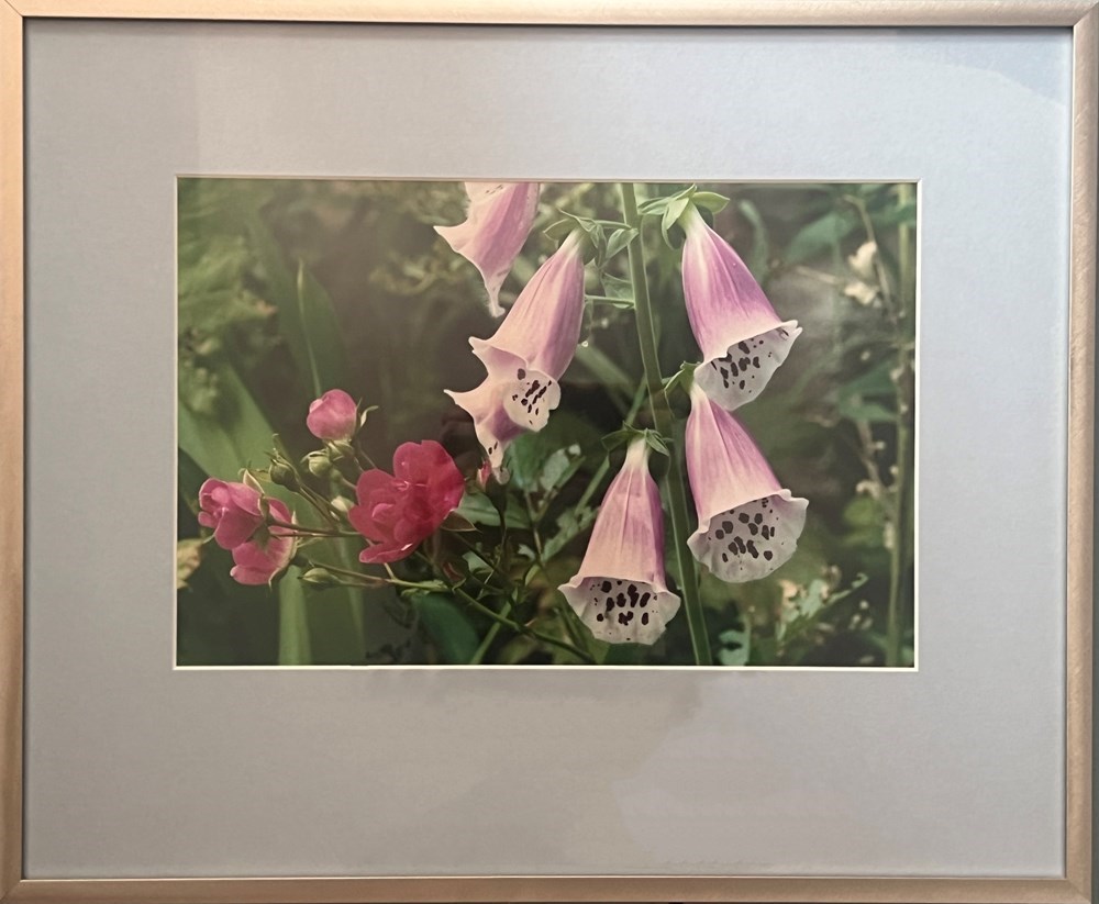 Feed Your Pink Flowers This one of a kind original photo print by Forest Park resident Michelle Melin-Rogovin is framed and ready to place in your home - metal silver frame highlights the pink colors of the flowers in the photo.