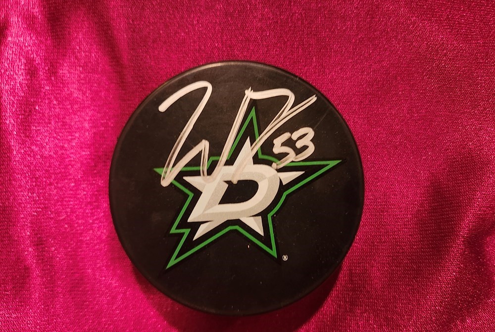 Puck signed by Dallas Stars Center Wyatt Johnson