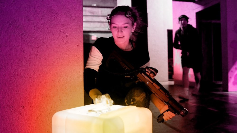 60 Minutes of Laser Tag for 2 people, 3 water bottles, 2 stickers. Not valid Saturdays. Looking for an exciting new challenge? Come test your skills at our laser tag facility, where you experience state-of-the-art gaming in a 14,00 square foot arena. Our spacious layout provides plenty of room for you to strategize and outmaneuver your opponents. Whether you’re a seasoned pro or new to laser tag, you’ll find plenty of challenges and fun at our facility. Venue has 14,000 square feet, eight separate 2-story buildings, tramways and passageways, hi-tech and low-tech props.
