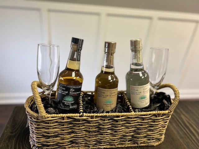 Sales Description: Take your tastebuds on a tour of premium tequila with the “Flight of the Agave” basket, featuring the legendary Casamigos trio. Whether you're a connoisseur or exploring the finer side of spirits, this set is the ultimate way to savor every sip in style. Included: 🍾 Casamigos Blanco, Reposado, and Añejo Tequilas – A complete flight of smooth, small-batch tequilas made famous by George Clooney himself. ($100 total estimated value) 🥂 Tasting Glasses – Elegant vessels to enhance aroma, flavor, and the full tasting experience. Total Value: $120+ Perfect for hosting an at-home tasting, gifting to a tequila enthusiast, or upgrading your bar with celebrity-worthy spirits.