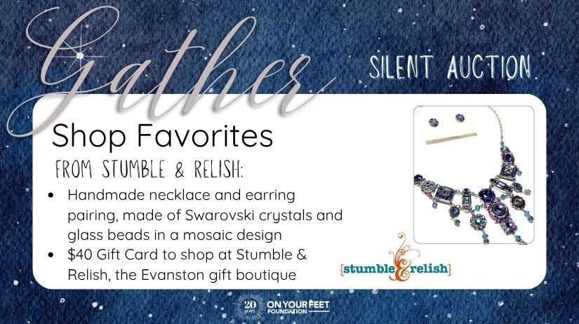 Item delivery: After you have paid for any auction items that you won, On Your Feet Foundation will contact you the week of August 11 with information on experiences with digital vouchers (such as vacations, cooking classes, and sports ticket vouchers), and to coordinate delivery and pickup of physical items. If you attended Gather Under The Stars in Evanston, physical items will be available for pickup at the Gather auction table once the auction closes (after 9:15 p.m.) — please see each item's description for more details on whether or not pickup is available and please provide proof of payment when picking up your item. Please note that select vouchers (i.e. vacations) are issued by WinningBidder/TravelPledge directly, so be sure to check your spam folder. If you have not received information on your winning bid by Friday, August 15, please contact Heather at heather@onyourfeetmidwest.org.