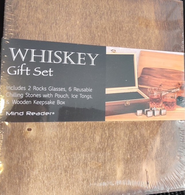 Includes 2 Rocks Glasses, 6 Reusable Chilling Stones with Pouch, Ice Tongs, & Wooden Keepsake Box.