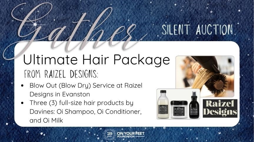 Win the Ultimate Hair Package from Raizel Designs in Evanston! You'll get a gift certificate for a Blow Out (blow dry) service at their Evanston salon, along with three (3) luxurious hair products: one (1) full-size Davines Oi Shampoo, one (1) full-size Davines Oi Conditioner, and one (1) full-size Davines Oi Milk. Donated by Raizel Designs. **If you win this item, pickup is available at the auction table at Gather. Otherwise, local pickup can be arranged in Evanston, Illinois. Shipping for this item is also available. Shipping fees are not included in the winning bid and must be paid separately when shipping arrangements are made.**