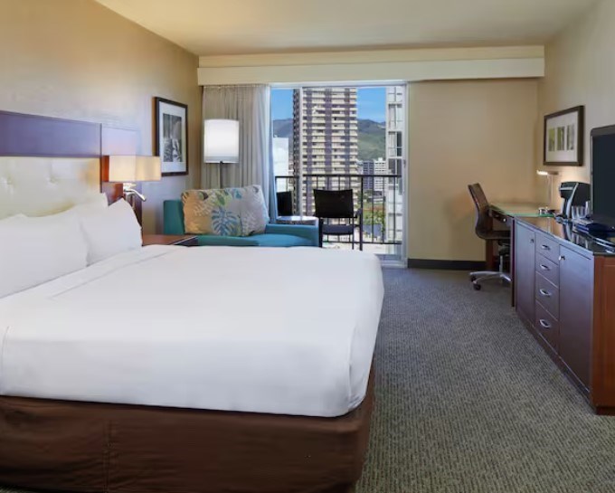 Escape to paradise with a 2-night complimentary stay at the DoubleTree by Hilton Alana – Waikiki Beach, just steps from the world-famous Waikiki shoreline! Details: This city/mountain view non-smoking room features one king-sized Sweet Dreams® bed. The room also features a large HDTV with side panels for easy laptop connectivity, a comfortable ergonomic workstation, and multiple outlets for electronic devices. Special touches in the room include a Keurig coffeemaker, mini fridge, and complimentary safe. All rooms have a lanai (balcony). WiFi is available in guest rooms for a charge and complimentary WiFi is available in the lobby. Enjoy daily breakfast for two and experience warm island hospitality, modern amenities, and a relaxing Hawaiian ambiance. Whether for a romantic retreat or a refreshing escape, this island getaway offers the perfect blend of comfort and aloha spirit. **Room types shown in photos may not match your exact room. Learn More: https://www.hilton.com/en/hotels/hnlkadt-doubletree-alana-waikiki-beach/