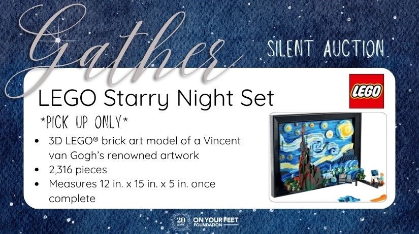 Build your own 3-D version of Vincent van Gogh's masterpiece, The Starry Night! Part of the LEGO® Ideas series, this set is 2,316 pieces of fun. Due to the complexity (and small pieces), this set is best for older teens and adults (recommended 18+). Once complete, the finished artwork will measure 12 inches high, 15 inches wide, and 5 inches deep. It can be displayed freestanding, or on a wall using the hooks on the back. Graciously donated by LEGO. **If you win this item, pickup is available at the auction table at Gather. Otherwise, due to the size and weight of this item, local pickup must be arranged in Evanston, Illinois. Shipping is unavailable. Thank you for understanding.**