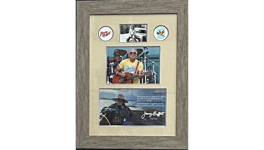 This framed tribute celebrates the legendary Jimmy Buffett, capturing the essence of his vibrant music and laid-back lifestyle that captivated millions. It's a must-have piece for any Parrothead looking to honor Buffett's enduring legacy. INCLUDES: - 25" X 32" framed tribute to Jimmy Buffet - Photo reads: "Jimmy passed away peacefully on the night of September 1st surrounded by his family, friends, music and dogs. He lived his life like a song till the very last breath and will be missed beyond measure by so many." - High quality framework - Shipping within the continental United States Location: Auburn, GA Details: Jimmy Buffet Tribute, Restrictions: Valid for shipping within the continental United States. Book within 9 months of purchase. Valid: Valid for shipping within the continental United States.