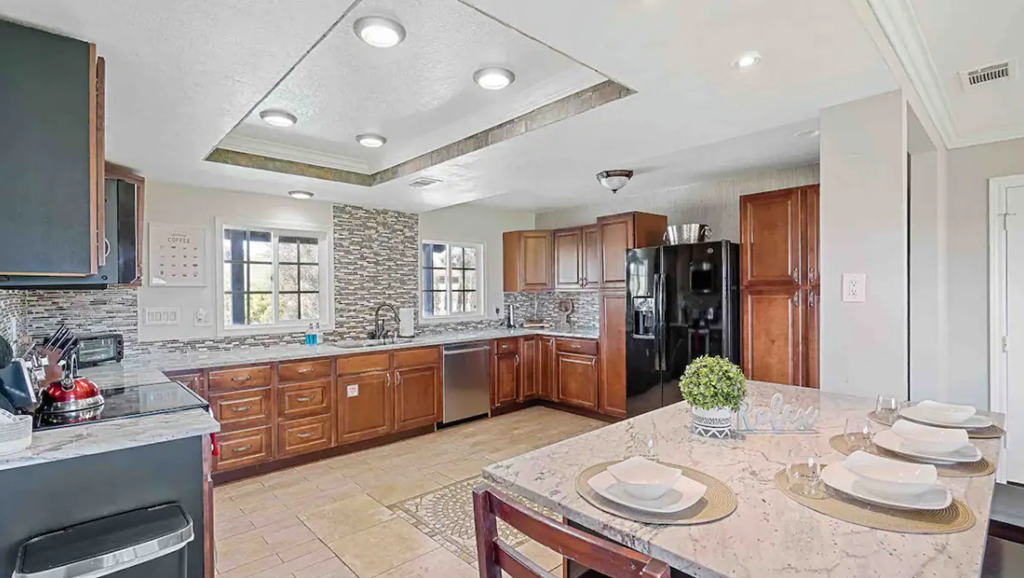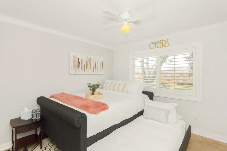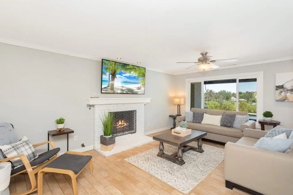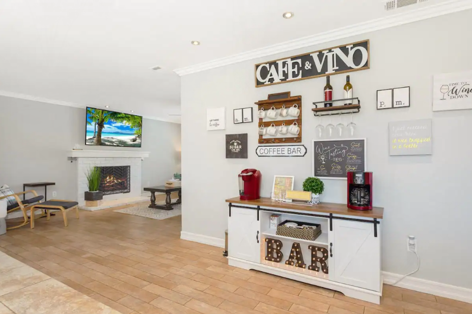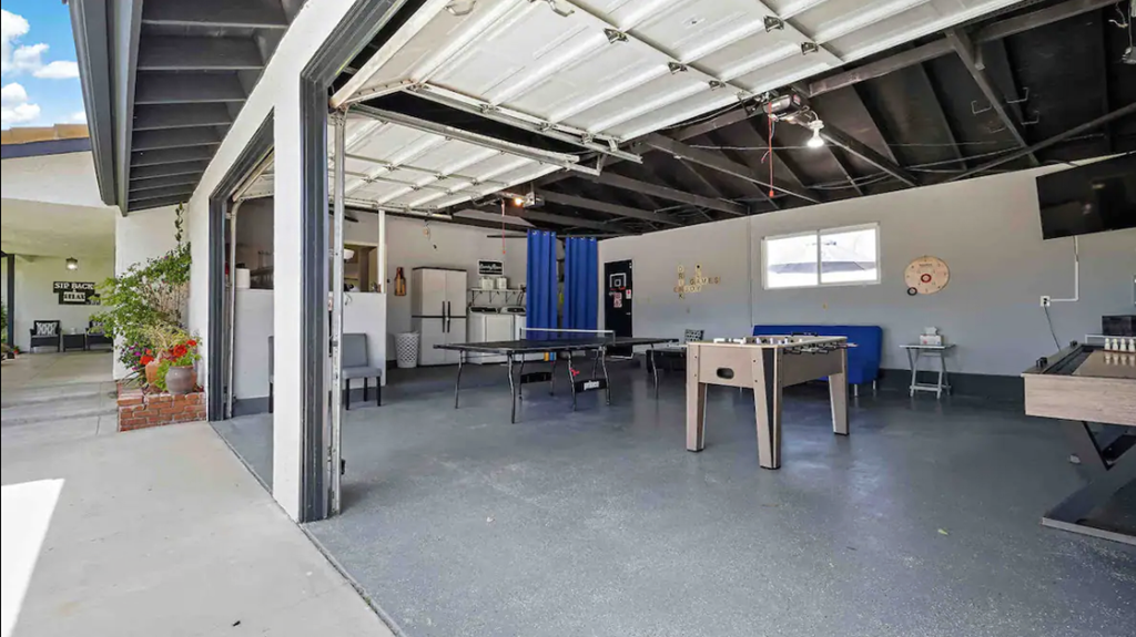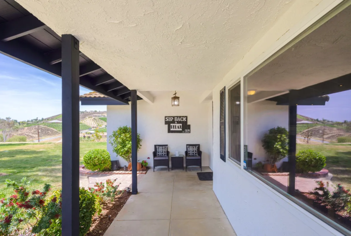 LOCATION Temecula, CA - walking distance to the Oak Mountain Winery! ABOUT THE HOME "Sip Back & Relax" is a modern vacation rental walking distance to Oak Mountain Winery with a pool, jacuzzi and game room. The 2100 square foot home has 3 bedrooms with 2 full bathrooms, and can comfortably sleeps 8 guests but available up to 10. Bed Configurations: - Master bedroom: 1 king bed with private bathroom - Bedroom 1: 1 Queen bed with Full Trundle - Bedroom 2: 1 Queen bed with Full Trundle - Family Room: 1 Queen size pull out sofa bed - Pack n play All bathrooms are stocked with shampoo, soap, and conditioner for your convenience. The beautiful kitchen is stocked with all essential cooking items. The garage has been turned into a well -equipped game room with a seating area, foosball, ping pong table, shuffle board, yard games, books & board games. Wander outside to the additional structure where a sleek bar with a pool table, karaoke, yoga mats, fitness equipment, stationary bike, small fridge & access to two beach cruisers can be enjoyed for an additional fee. Or sit and relax to watch the kids play yard games that are available to use during your stay. WINERIES - Oak Mountain Winery: Oak Mountain Winery is a fun, family owned winery on the De Portola Wine Trail, in Temecula’s wine country. Home to Southern California’s only mined wine caves, Oak Mountain offers tours and tastings are known for their famous raspberry and strawberry champagnes and offer over 30 award winning wines. - Altisima Winery: Altisima Winery celebrates the history and heritage of one of California’s oldest wine regions, by paying homage to the Spanish captain who memorialized the region. Join them in celebrating their Spanish roots with a world-class modern touch. - Leoness Cellars: Enjoy picturesque vineyard views while sampling a range of wines highlighting the very best of what Temecula has to offer. Leoness Cellars has farmed the local community since the 1970s and are committed to producing wine from the highest quality, local fruit. - Fazelli Cellars: Taste award-winning wines in our beautiful contemporary Tasting Room while enjoying expansive views of the rolling hills of Temecula Valley Wine Country.