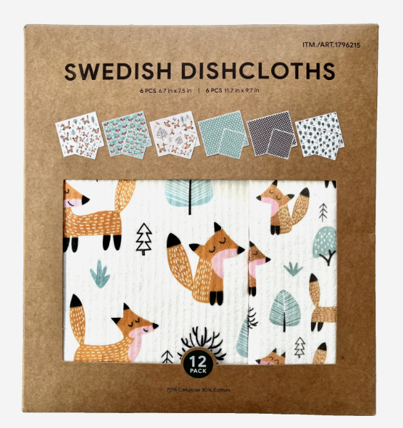 These MIU Silicone Freezer Trays with Lids are made for storing and freezing soup, broth, sauce, and ice. They come in ½ cup, 1 cup, and 2 cup mold sizes with lids. These flexible freezer trays are perfect for freezing whole meals, single servings, sauces, ingredients, and other items in the portion size of your choice. Silicone freezer trays can make baking, freezing, and storing both easy and convenient. Each tray comes with convenient fill lines in both metric and standard units, and includes interchangeable lids. Includes: (1) ½ Cup Tray (2) 1 Cup Trays (2) 2 Cup Trays (5) Lids Swedish Dishcloths: Add charm and eco-friendly function to your kitchen with this adorable fox-themed set. Includes six standard and six large ultra-absorbent cloths that replace up to 15 rolls of paper towels each. Perfect for wiping counters, cleaning dishes, and tackling spills, these reusable, machine-washable cloths are durable, fast-drying, and planet-friendly — practical, cute, and sustainably smart. Sizes: (6) Standard 6.7" x 7.5" (6) Large 9.7" x 11.7";